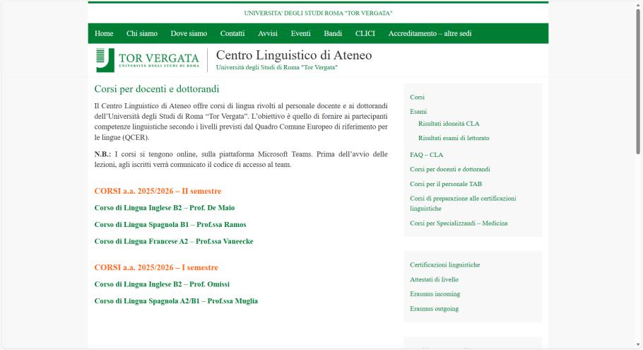 Per ulteriori informazioni relative ai corsi, compresi calendario e modalità di iscrizione, è possibile consultare la sezione relativa a Docenti e Dottorandi sul sito del CLA, al link