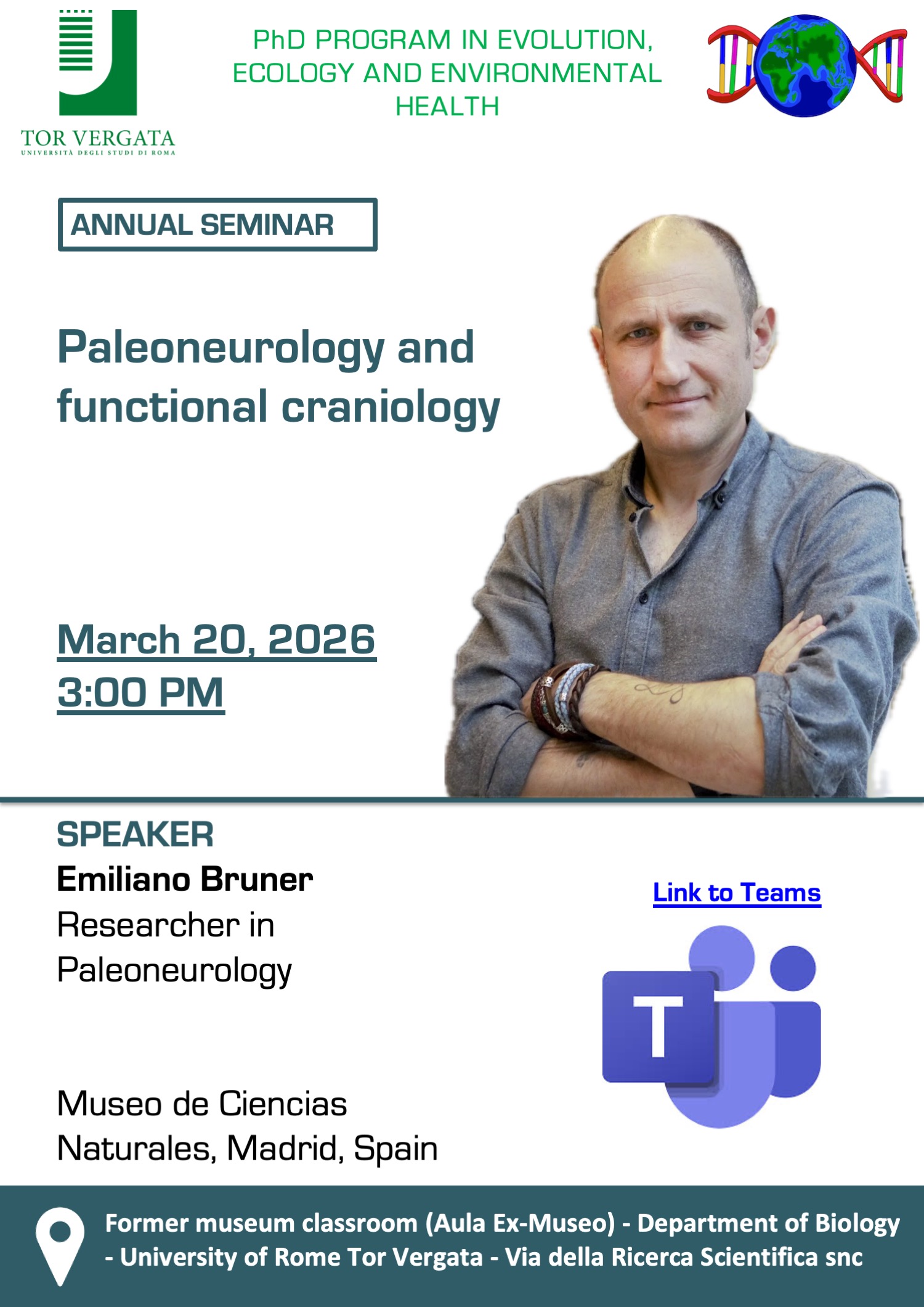 Paleoneurology and functional craniology Prof. Emiliano Bruner (Museo Nacional de Ciencias Naturales – CSIC - Madrid) 20 Marzo 2026