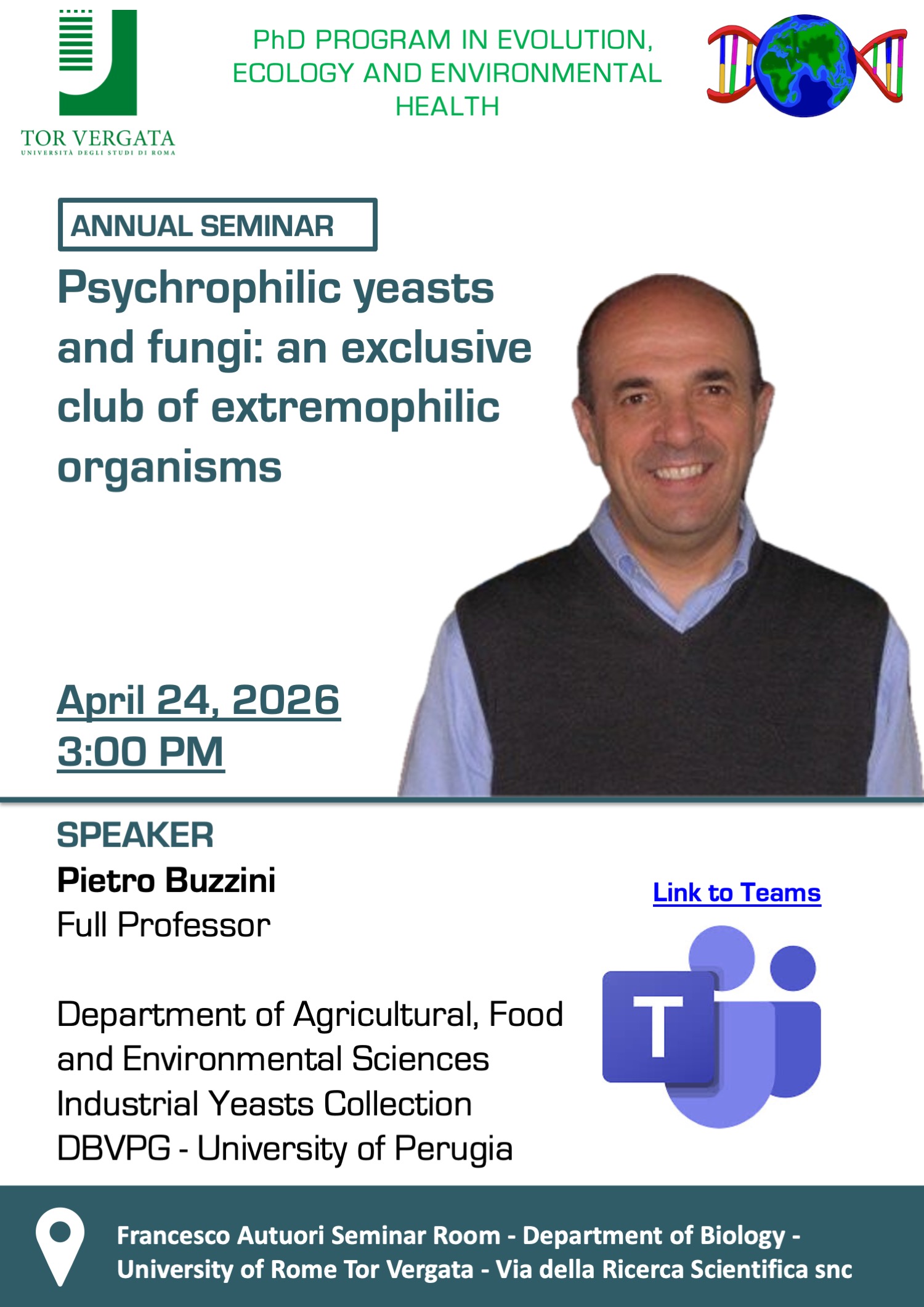 Psychrophilic yeasts and fungi: an exclusive club of extremophilic organisms Prof. Pietro Buzzini (Department of Agricultural, Food and Environmental Sciences Industrial Yeasts Collection DBVPG - University of Perugia) 24 Aprile, 2026