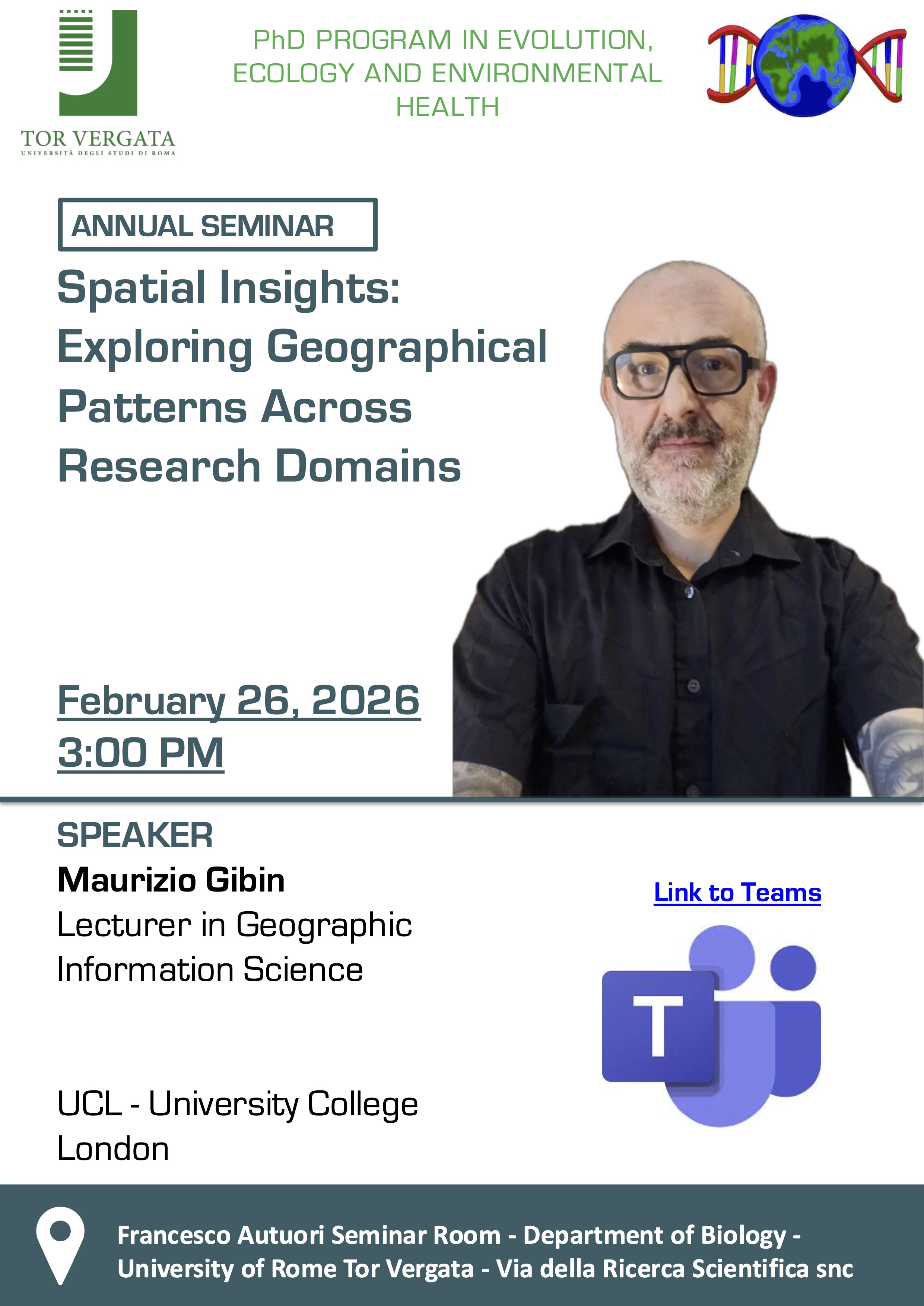 Spatial Insights: Exploring Geographical Patterns Across Research Domains Dr. Maurizio Gibin (University College London) 26 Febbraio 2026