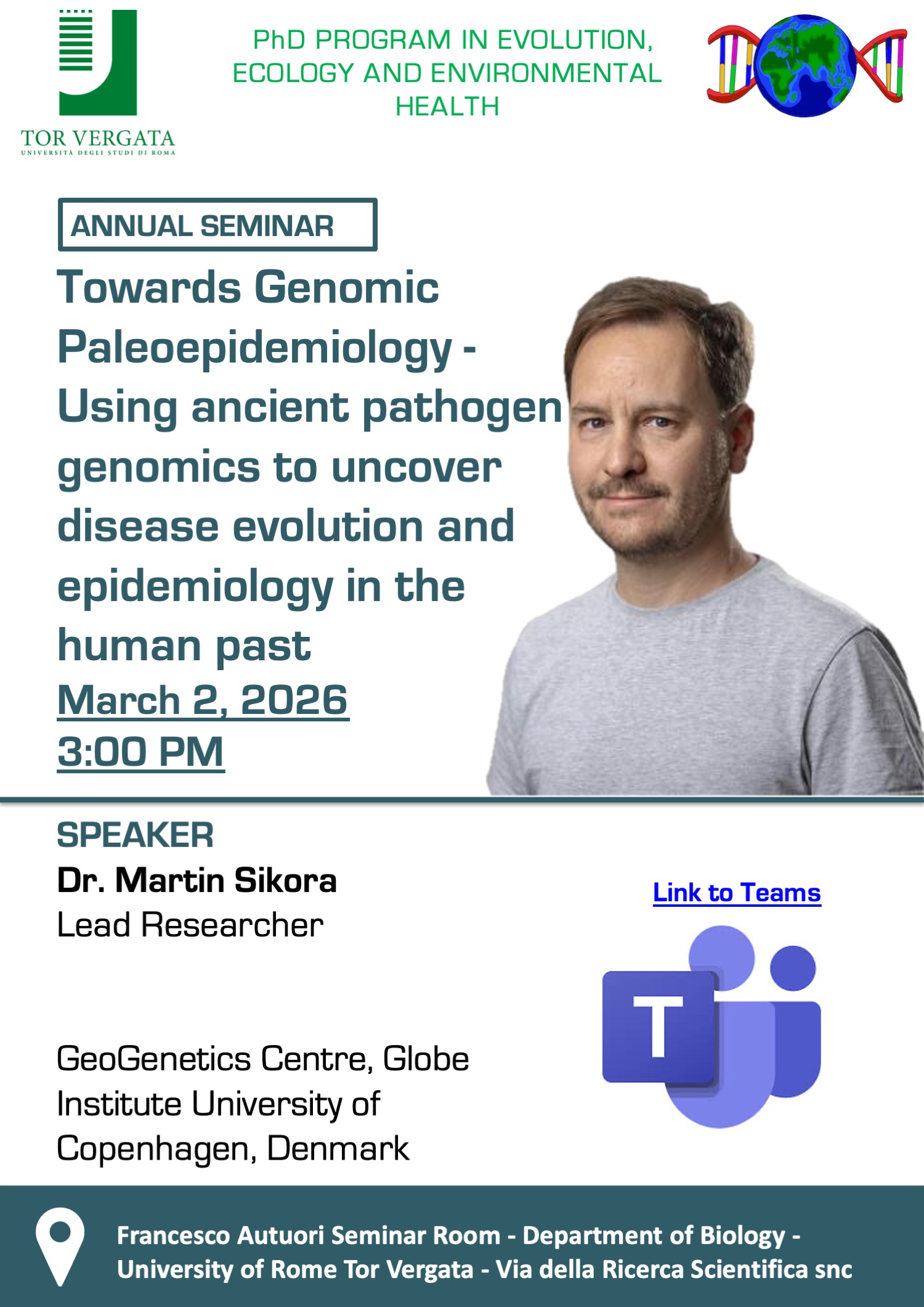 Towards Genomic Paleoepidemiology - Using ancient pathogen genomics to uncover disease evolution and epidemiology in the human past Prof. Martin Sikora (University of Copenhagen) 2 Marzo 2026